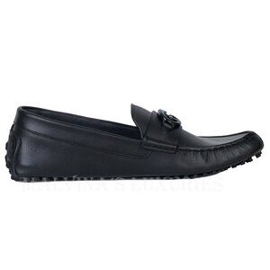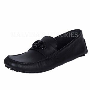 GUCCI SHOES MENS LOAFERS MOCCASINS G LOGO BLACK LEATHER