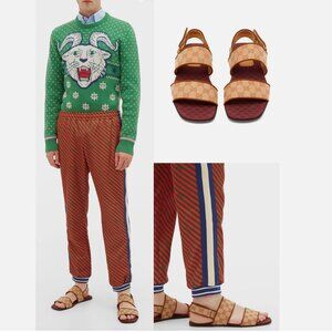 GUCCI SHOES MENS SENIOR GG SUPREME CANVAS SANDALS sz 7 US 7.5