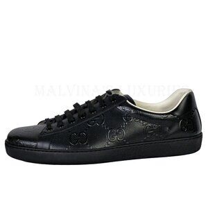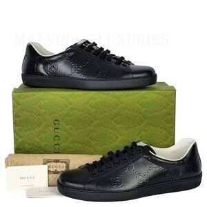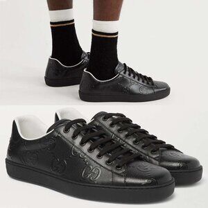 GUCCI SNEAKERS ACE TENNIS LOGO EMBOSSED PERFORATED LEATHER SHOES sz 13.5 14 US