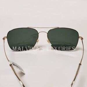 Unique Features: Gold Metal Round Frame Aviator Sunglasses, Integrated Nose Grinds for Comfort, Thin Metal Arms with Clear Interlocking Logo Detail Ear Pieces.