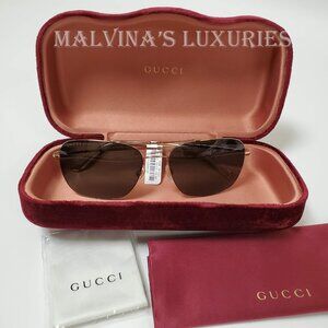 GUCCI SUNGLASSES GG0503S 003 MENS GOLD METAL AVIATOR INTERLOCKING G LOGO