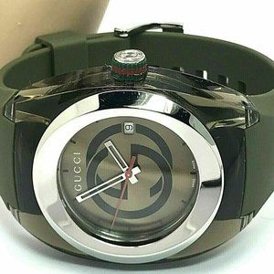 GUCCI SYNC YA137106 Green Rubber Band 46mm Case Swiss Quartz Men's Watch (AK470Y)