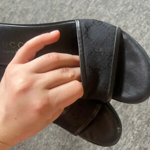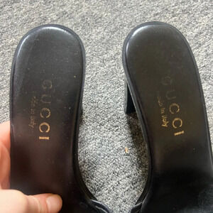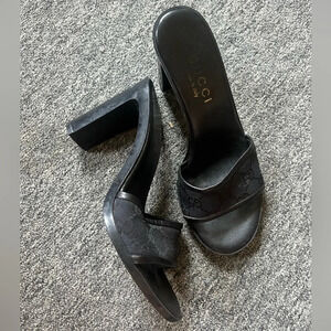 GUCCI | Sandalo Suola Gomma Original GG/Cuoio Maidera Heels in Nero, size 5, excellent condition, light wear