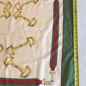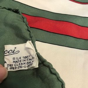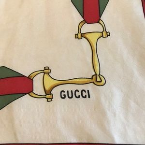GUCCI Scarf 100% Silk, White Red Green, Made in Italy 33x33 SALE