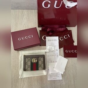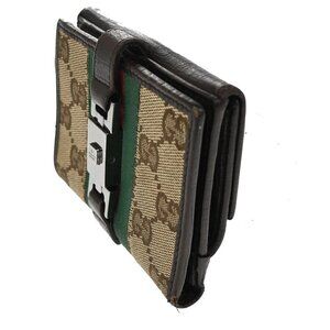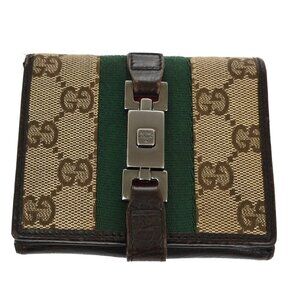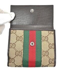 GUCCI Sherry GG Pattern Bifold Wallet Canvas Leather Brown Beige SHW 07TA156