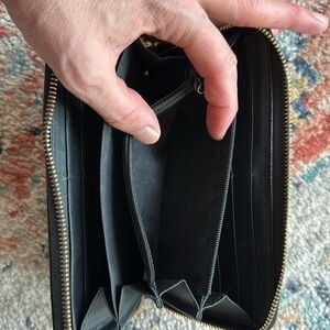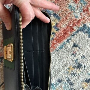 GUCCI Sherry Round Zippy Long Wallet Leather Black Red Authentic MWa0102