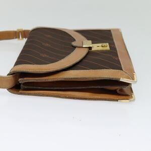 GUCCI Shoulder Bag Canvas Leather Brown Gold