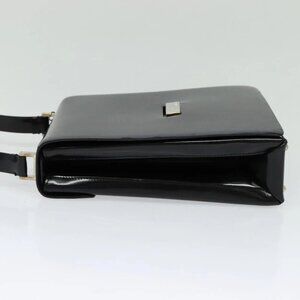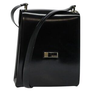 GUCCI Shoulder Bag Enamel Black 001 2113 1745 Auth am8764