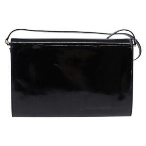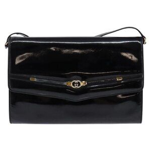 GUCCI Shoulder Bag Enamel Black Gold Auth