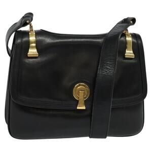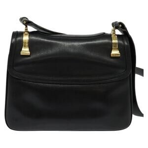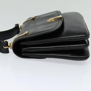 GUCCI Shoulder Bag Leather Black Gold
