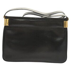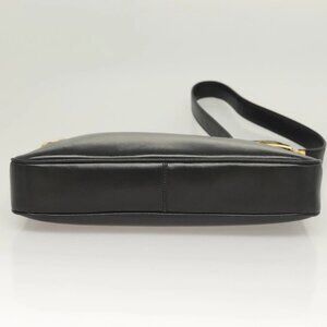 GUCCI Shoulder Bag Leather Black Gold Auth