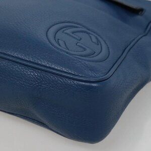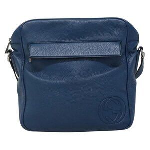 GUCCI Shoulder Bag Leather Blue Silver 337084 Auth 130167