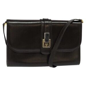 GUCCI Shoulder Bag Leather Brown Gold Silver Auth KD536