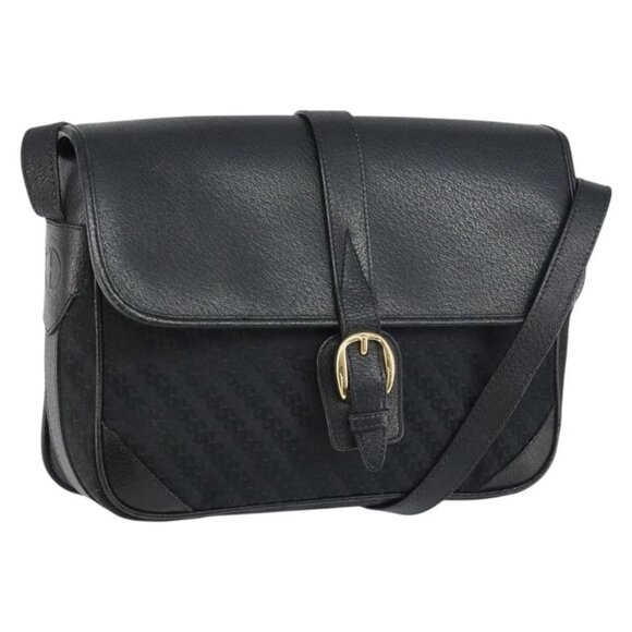 GUCCI Shoulder Bag Leather Canvas Black Gold 001 113 0613 Auth ep12275