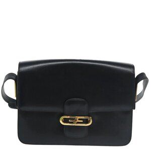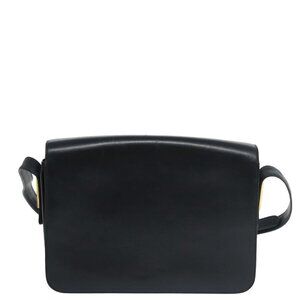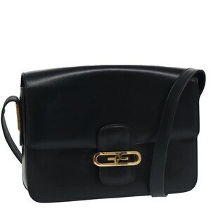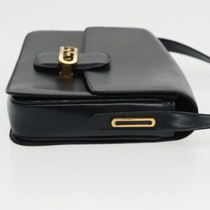 GUCCI Shoulder Bag Leather Navy Gold Auth