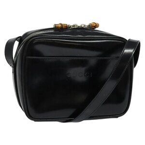 GUCCI Shoulder Bag Patent leather Black Silver Auth ep10410