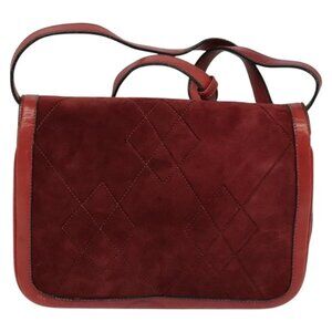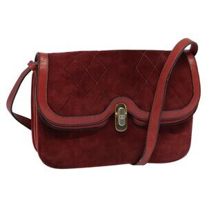 GUCCI Shoulder Bag Suede Vintage Red Gold Auth ep7843