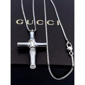 Discover the exquisite beauty of the GUCCI Silver 925 Bamboo Cross Pendant Necklace – a captivating fusion of faith and fashion. This necklace is a statement piece that not only enhances your style but also symbolizes your faith.