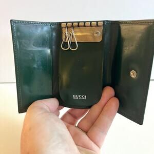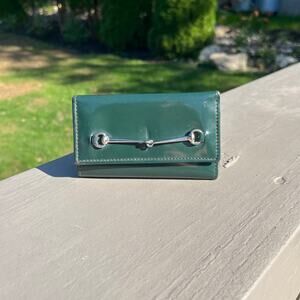 GUCCI Silver Horsebit, Dark Green Patent Leather, Key & Card Case Holder, LUXURY