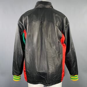 GUCCI Size 36 Black Red Color Block Lambskin Leather Varsity Jacket