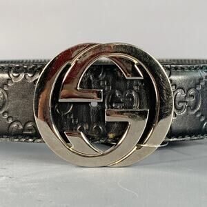 GUCCI Size 38 Guccissima Black Monogram Leather GG Buckle Belt