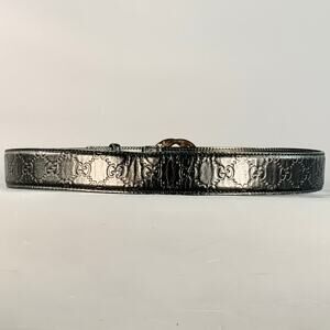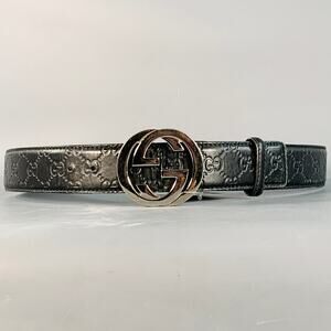 GUCCI belt in a black debossed leather featuring signature Guccissima pattern, and silver tone metal GG buckle closure. Made in Italy.