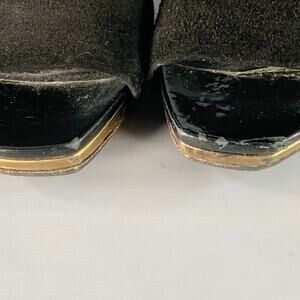 GUCCI Size 8.5 Black Gold Suede Patent Leather Ankle Sandals