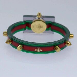 GUCCI Skeleton Web Sherry Line Watches plastic Red Green Auth ki4839