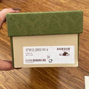 White rubber Gucci slides. Size 38 runs tts. Comes with original box and two dust bags and information cards. Slight scuff at toe on both shoes, see photos.