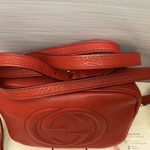 GUCCI Soho Disco Black Leather Crossbody Purse 👜 🌸 Pre-loved in very good condition 🌸 Code series 308364 002123 🌸 Made in: Italy 🌸 Handle/leather: Small scratches/scuffs/rubs/aging 🌸 Exterior/Canvas: Small scratches/rubs 🌸 Interior: Small scratches/scuffs/stains/dust 🌸Hardware: Small scratches/tarnish/discoloration 🌸 Bag is overall in great shape and condition, is mostly clean inside and out. 🌸 Features: ⭐️ Red color, crossbody leather strap ⭐️ Style: Crossbody shoulder bag ⭐️ Material: Leather ⭐️ Dimensions inches (approx.): W7.9 x H5.9 x D2.7inches ⭐️Dimensions cm (approx.): W20 x H15 x D7cm ⭐️ Strap length (approx.): 48-52.7inches / 122-134cm (adjustable) 🌸 No smell or odors (varies by individuals) 🌸 Please refer to pictures for more details as parts of description. Last picture is stock images. 🌸 Comes with dust bag