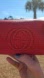 Elevate your style with this stunning red leather bag/cosmetic pouch from Gucci. This bag combines luxury and functionality.