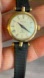 Watch has a gold-plated case with black stacked design, clear and clean white dial with Roman numerals case is in great shape.