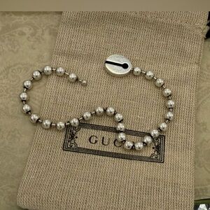 GUCCI Sterling Silver Boule Blue Enamel Single Logo Beaded Bracelet NEW