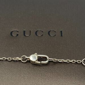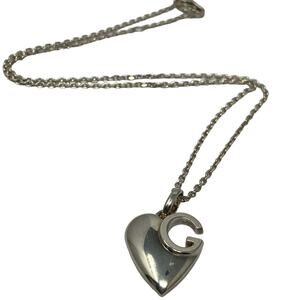 "Elevate your style with this GUCCI Sterling Silver Heart Necklace Pendant. Crafted with precision and sophistication, this necklace features a sterling silver heart pendant adorned with the iconic 'G' hallmark.