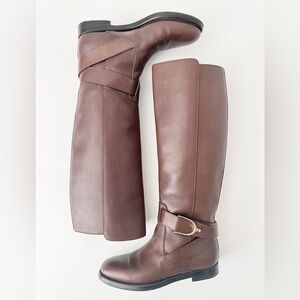 GUCCI | Stirrup Brown Leather Pull On Flat Riding Boots Tall Knee-high 36 US 6