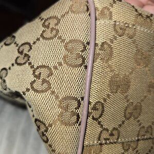 Beautiful Gucci Sukey Monogram Bag with Lavender Leather Trim is a chic and feminine handbag from Gucci’s popular Sukey collection, known for combining the iconic Gucci GG monogram canvas with stylish leather accents. The body of the bag is made from Gucci’s signature GG monogram canvas. Trimmed in lavender leather, which gives it a fresh, eye-catching contrast. Soft, slouchy structure with pleats along the front. Features dual leather top handles, making it a shoulder or arm-carry bag.
