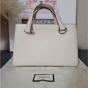 100% Authentic Gucci Sylvie ivory leather top handle tote