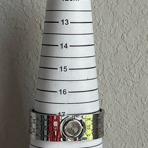 The watch is crafted of stainless steel and features a a beautiful rotating bezel.