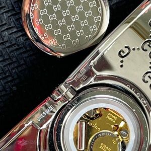 100% stainless steel bracelet with cutout Gucci monogram motifs along the band.