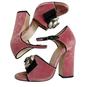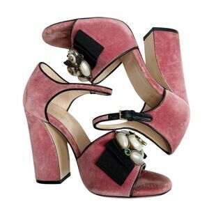 Tags: unique, statement, authentic, luxury, special occasion, party, event, date night, night out, Gucci Tibet sandals, pink velvet Gucci heels, pearl bee embellished shoes, grosgrain bow sandals, luxury block heel sandals, Gucci statement footwear, collectible designer heels, Italian-made velvet sandals, evening event Gucci shoes, bold Gucci block heels, party-ready luxury sandals, runway-level Gucci heels, pink designer statement shoes.