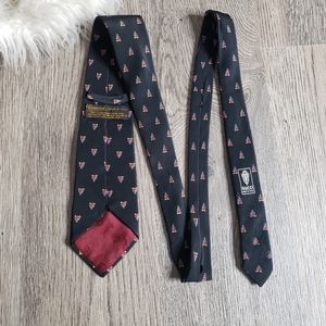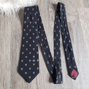 designer silk tie by Gucci. Corners are in excellent condition. no stains. has hole on back side of tie. shown in photos. see pictures for measurements and details
