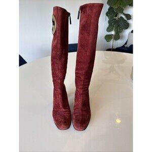 GUCCI Tom Ford Red Suede Leather Interlocking GG Logo Knee High Boot EU 36.5/6.5
