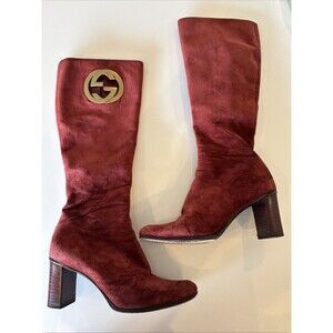 GUCCI Tom Ford Red Suede Leather Interlocking GG Logo Knee High Boot EU 36.5 US 6.5