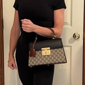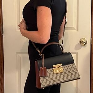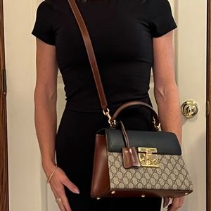 GUCCI Top Handle/Crossbody Handbag with Gold Lock Latch