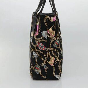 GUCCI Tote Bag Satin Black Gold 153009 Auth 136048