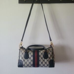 AUTENTIC GUCCI VINTAGE BLUE MONOGRAM OPHIDIA BOSTON BAG,