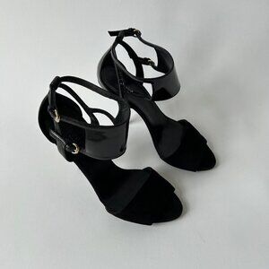 GUCCI vintage sandals designed by Frida Giannini for Gucci Spring 2008. Patent leather heeled sandals with double buckle. Featured on the runway.