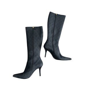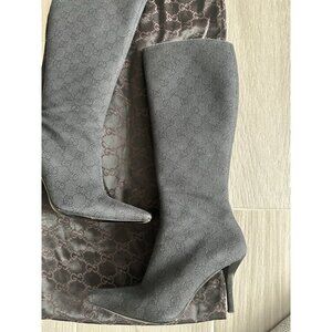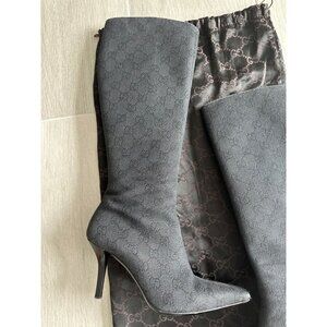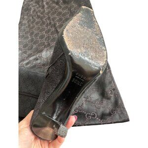 GUCCI Vintage Black Denim Logo Heels Boots Size 36.5