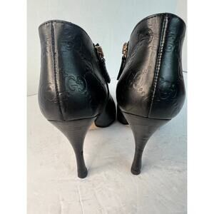 GUCCI Vintage Black Leather GG Monogram Logo Short Zip Stiletto Heel Bootie 5C W