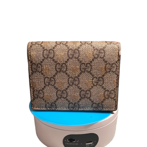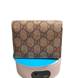 Gucci Vintage brown leather wallet with iconic monogram pattern. Compact and elegant design. This wallet is in EXCELLENT CONDITION.